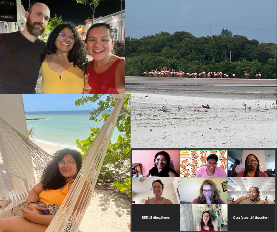 I've also been trying to hold space for joy. We held 3 beautiful events (Write Start, Camp Write Start, and Harvest Week). My dear friend, Zu, came to visit us in Mérida. I lost my shoes on a quest across a stretch of spongy sand to get a closer look at a flamboyance of flamingos.